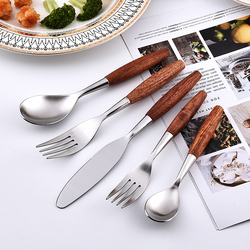 Commercio all'ingrosso Set di posate in acciaio inox con manico in legno posate 304/420 cucchiaio coltello Set di posate