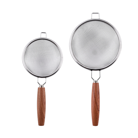 Commercio all'ingrosso di legno noce manico maglia filtro da tè per bere erbe di tè succo di caffè mini infusore per il tè