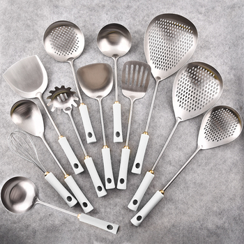 Set di utensili da cucina con manico bianco all'ingrosso SUS304 in silicone acciaio inossidabile include spatola e cucchiaio di pepe
