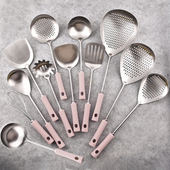 Commercio all'ingrosso SUS304 in acciaio inossidabile acciaio inossidabile Set rosa manico utensili da cucina spatola pepe forato cucchiaio